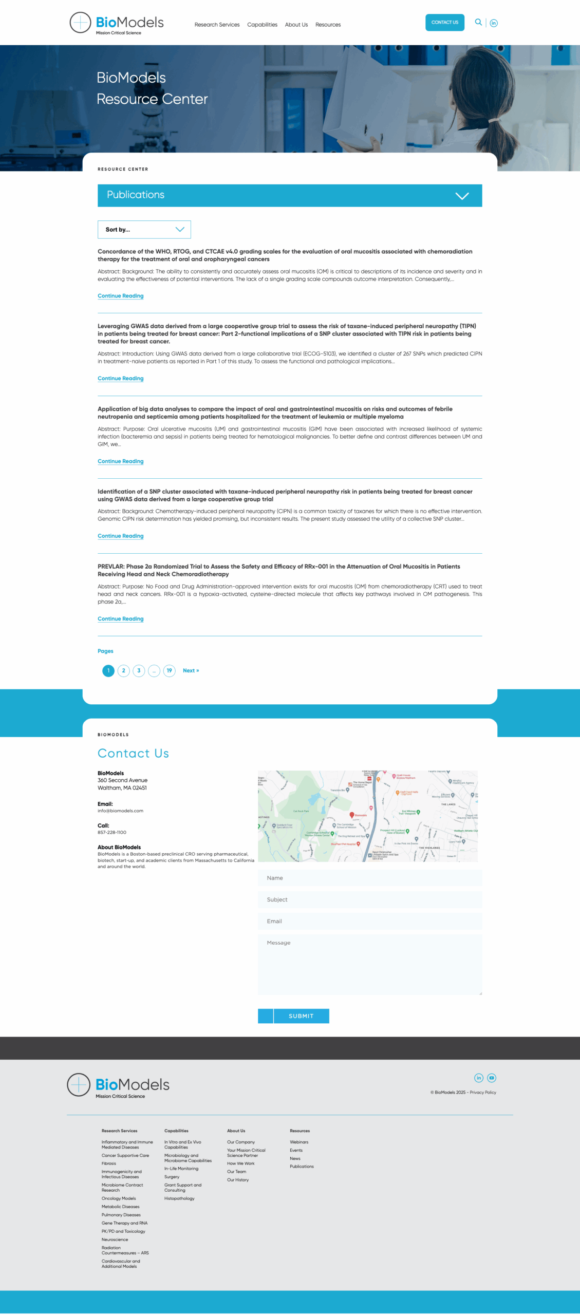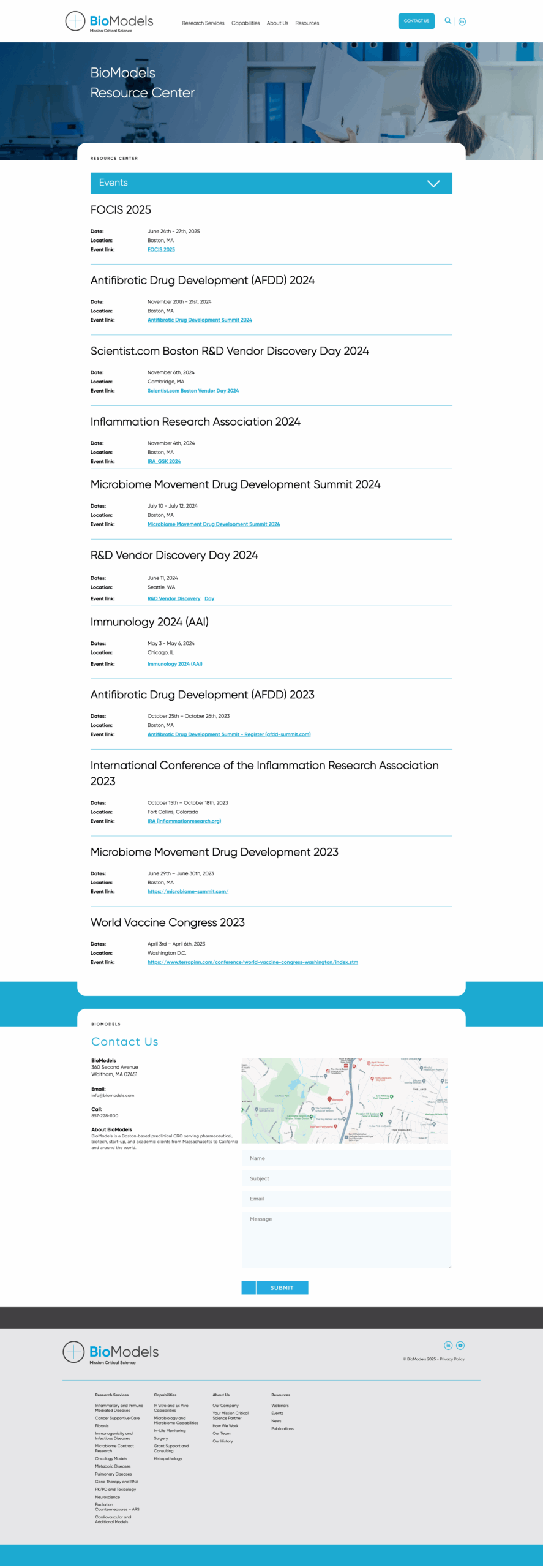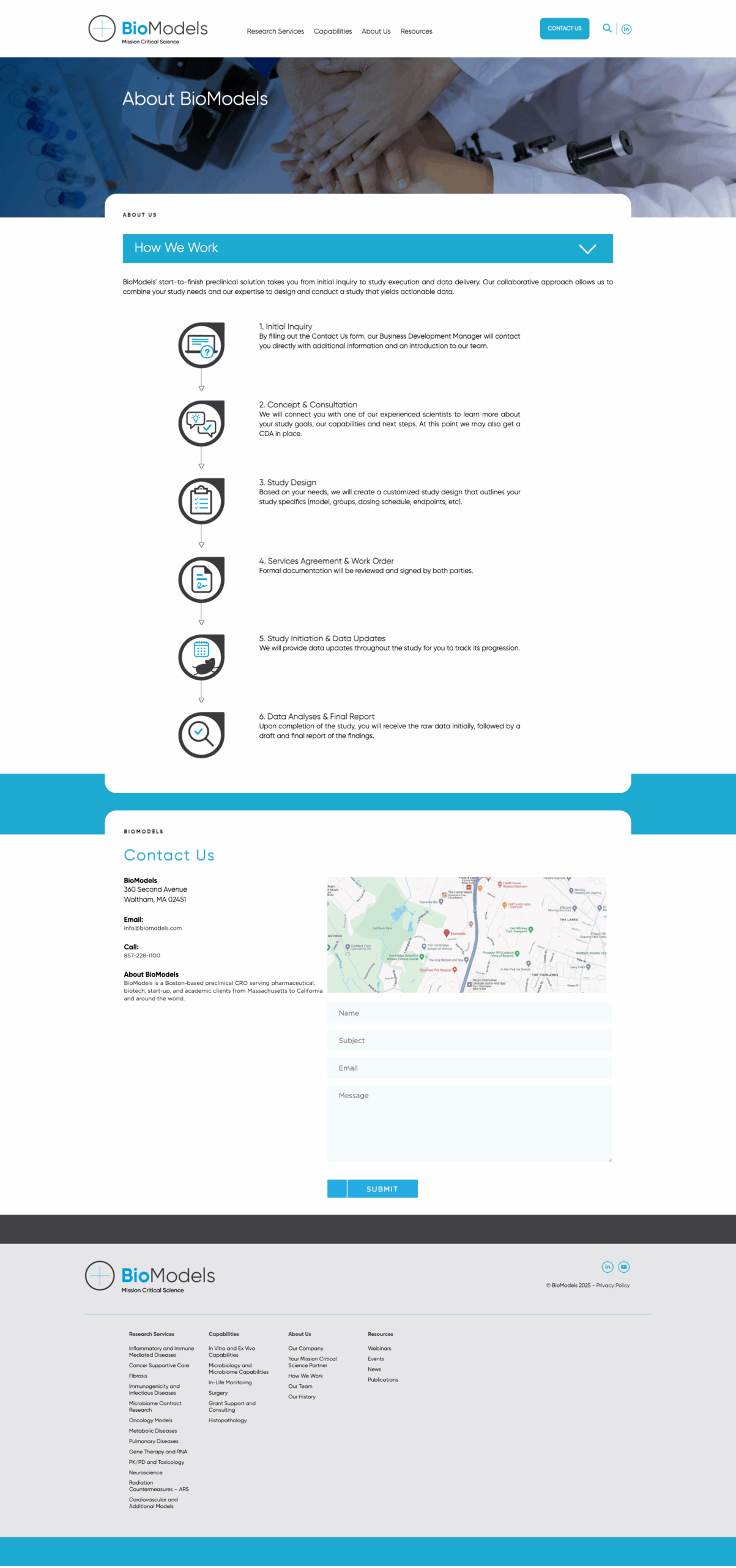 Sitio web corporativo para BioModels, empresa especializada en modelos preclínicos de investigación animal, enfocada en ofrecer servicios contractuales de investigación científica avanzada.