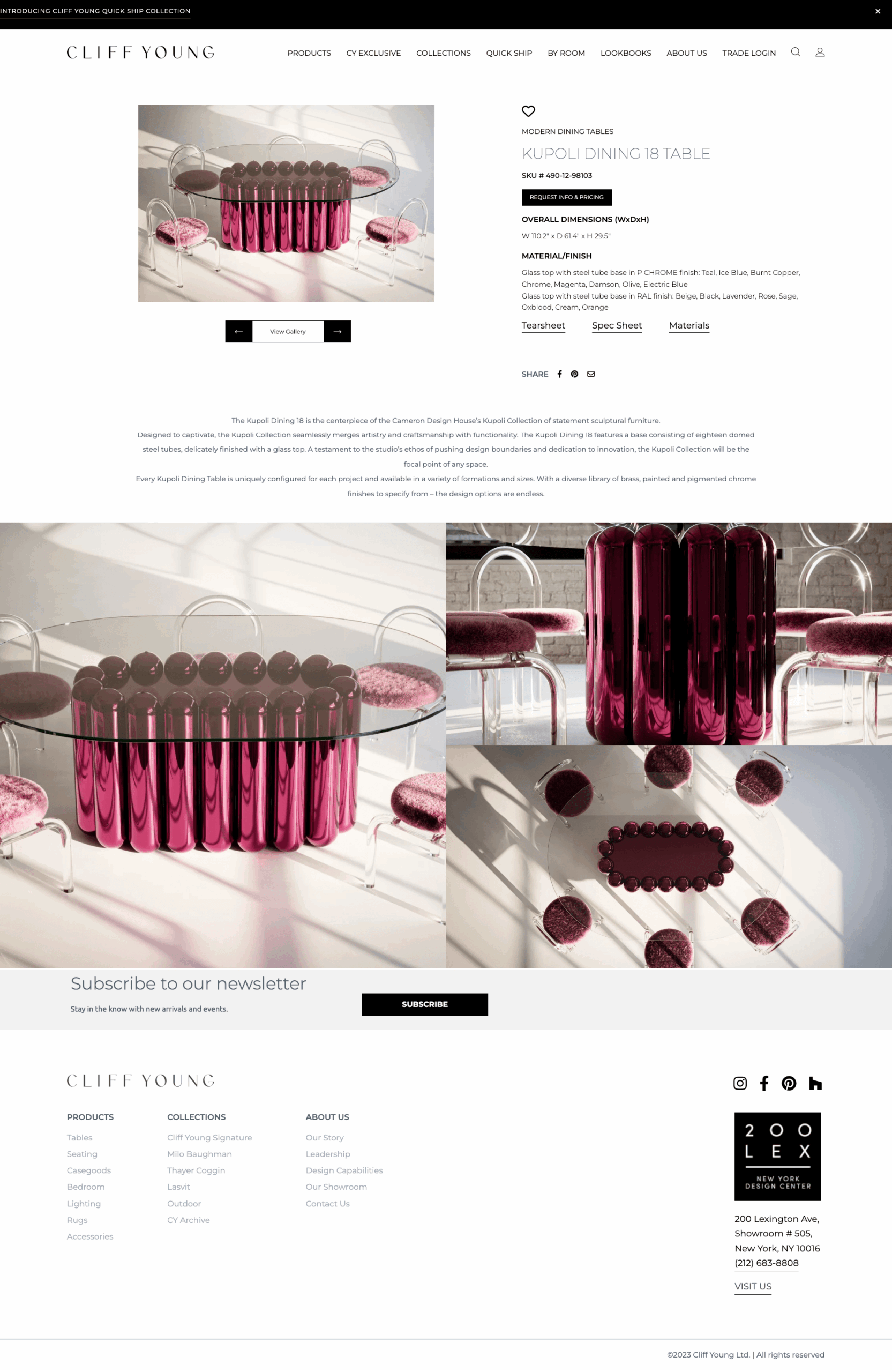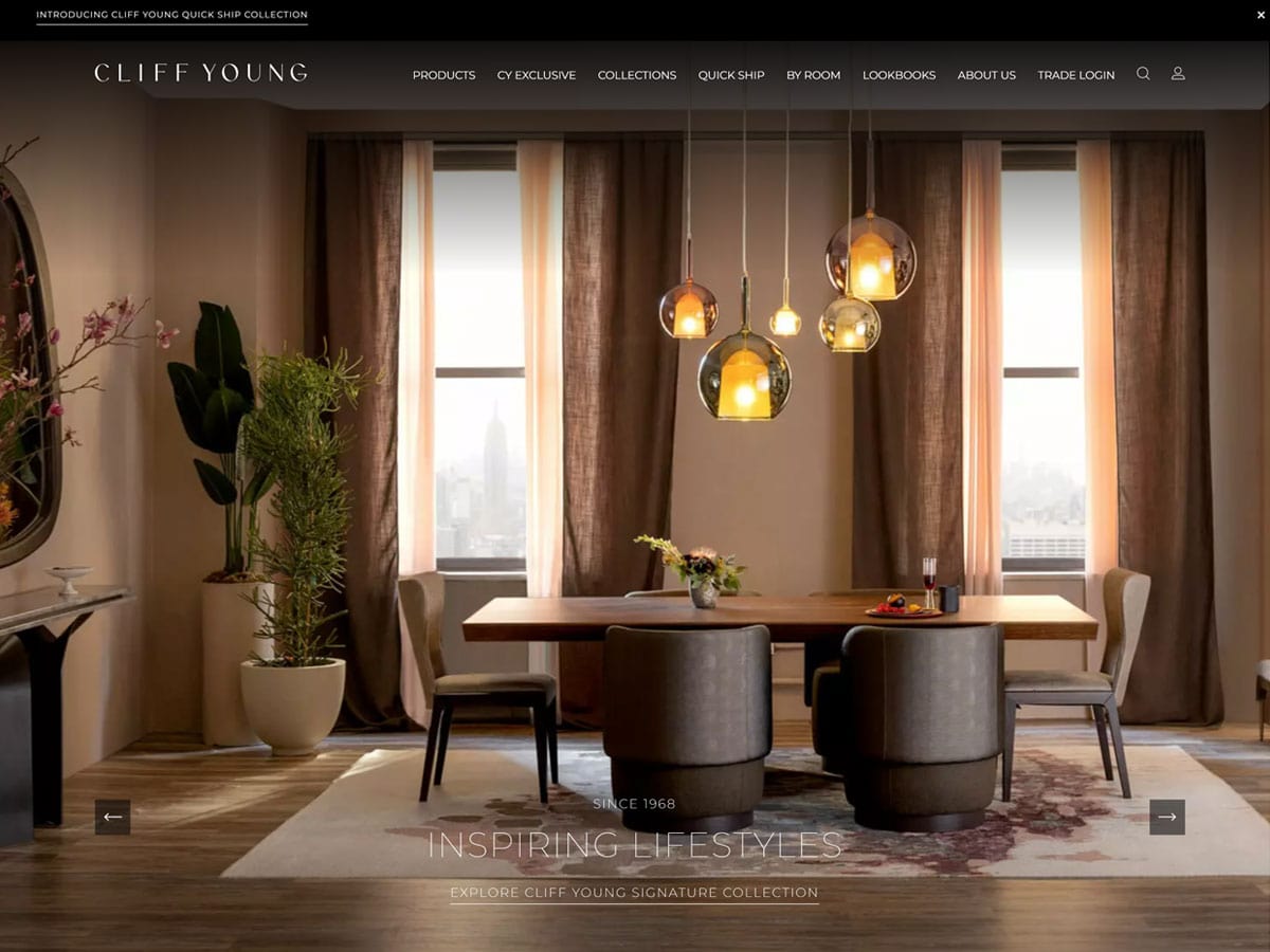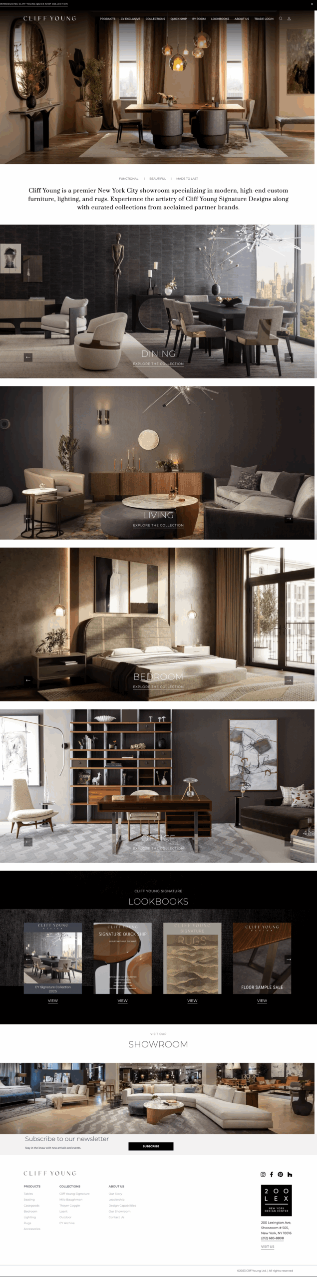 Sitio web corporativo con tienda en línea para Cliff Young Ltd, marca reconocida por muebles de alta calidad que combinan diseño atemporal con funcionalidad práctica.