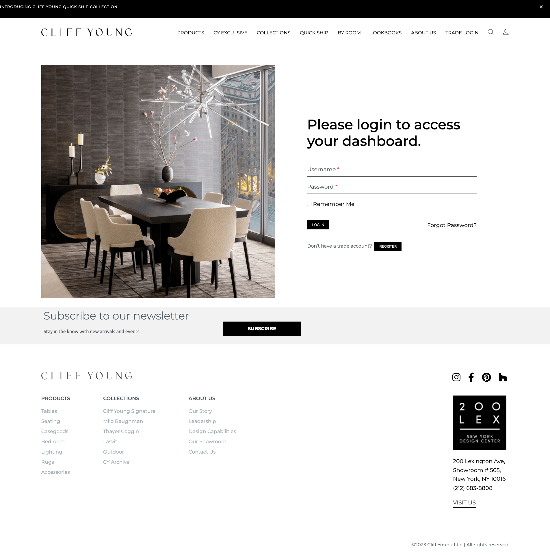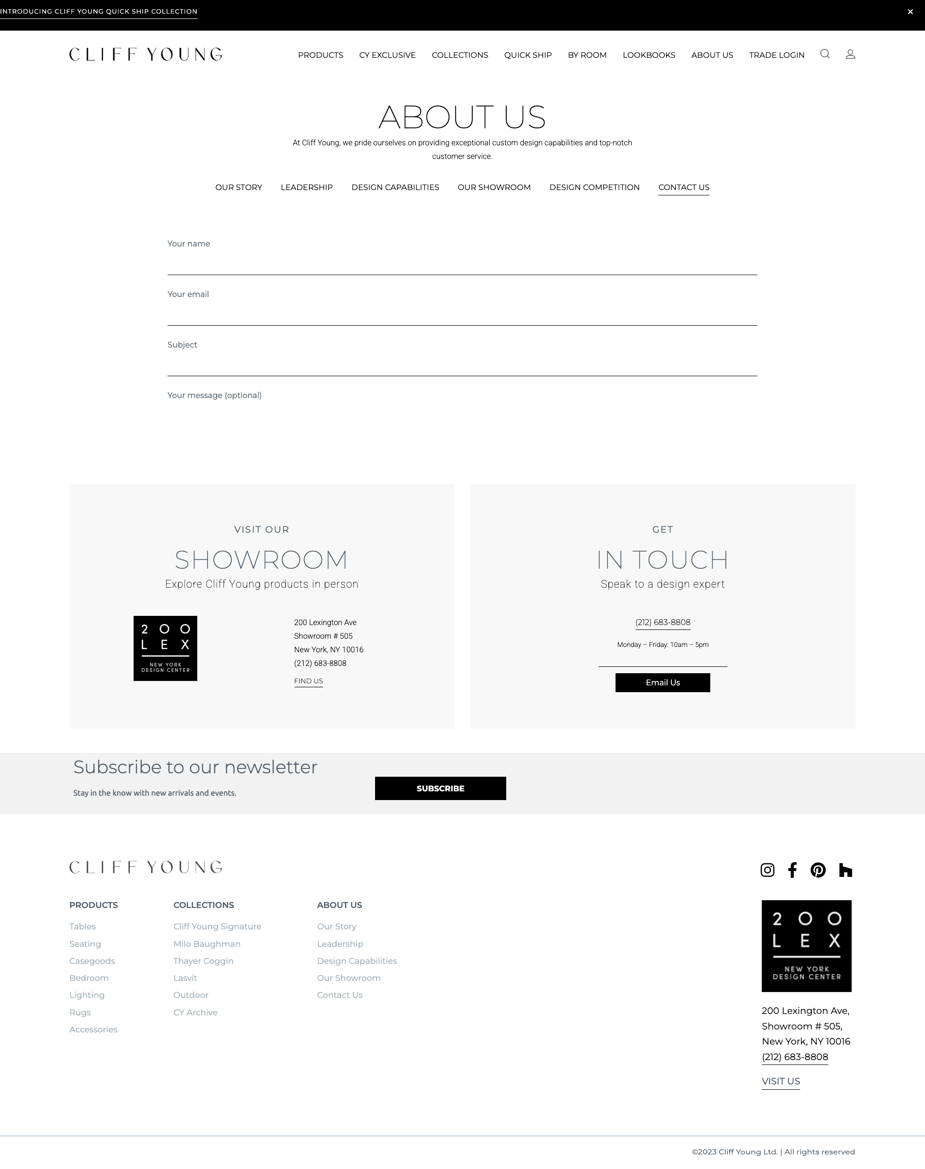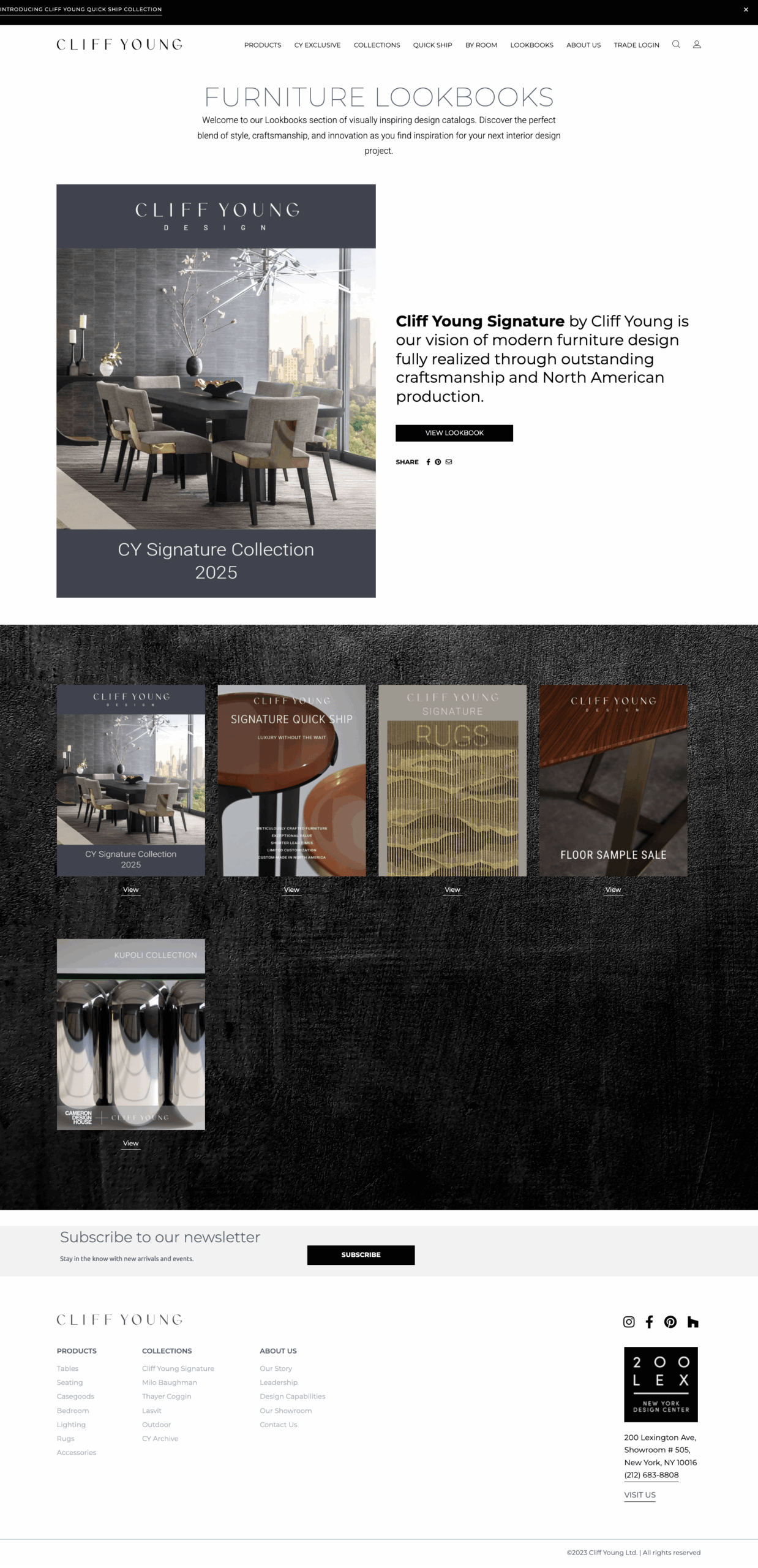 Sitio web corporativo con tienda en línea para Cliff Young Ltd, marca reconocida por muebles de alta calidad que combinan diseño atemporal con funcionalidad práctica.